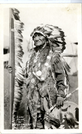LIBI_00312_10900; A photo postcard. This image depicts Lone Bear, an Osage. He is wearing a feathered headdress and fur vest. He holds a shield and horn club in his left hand and a feathered staff in his right. White lettering on the bottom of the image reads: “Lone Bear 101 Copyright 1912 Vince Dillon”. On the verso, a stamp in black ink along the top reads: “Vince Dillon, Photos, Fairfax, OKLA” A handwritten note along the side reads: “Osage”. This image was produced by Vince Dillon in 1912. ; photo postcard;Courtesy of the National Park Service, Little Bighorn Battlefield National Monument, LIBI_00312_10900, Vince Dillon, "Lone Bear, Osage, in a Fur Vest," 1912.
