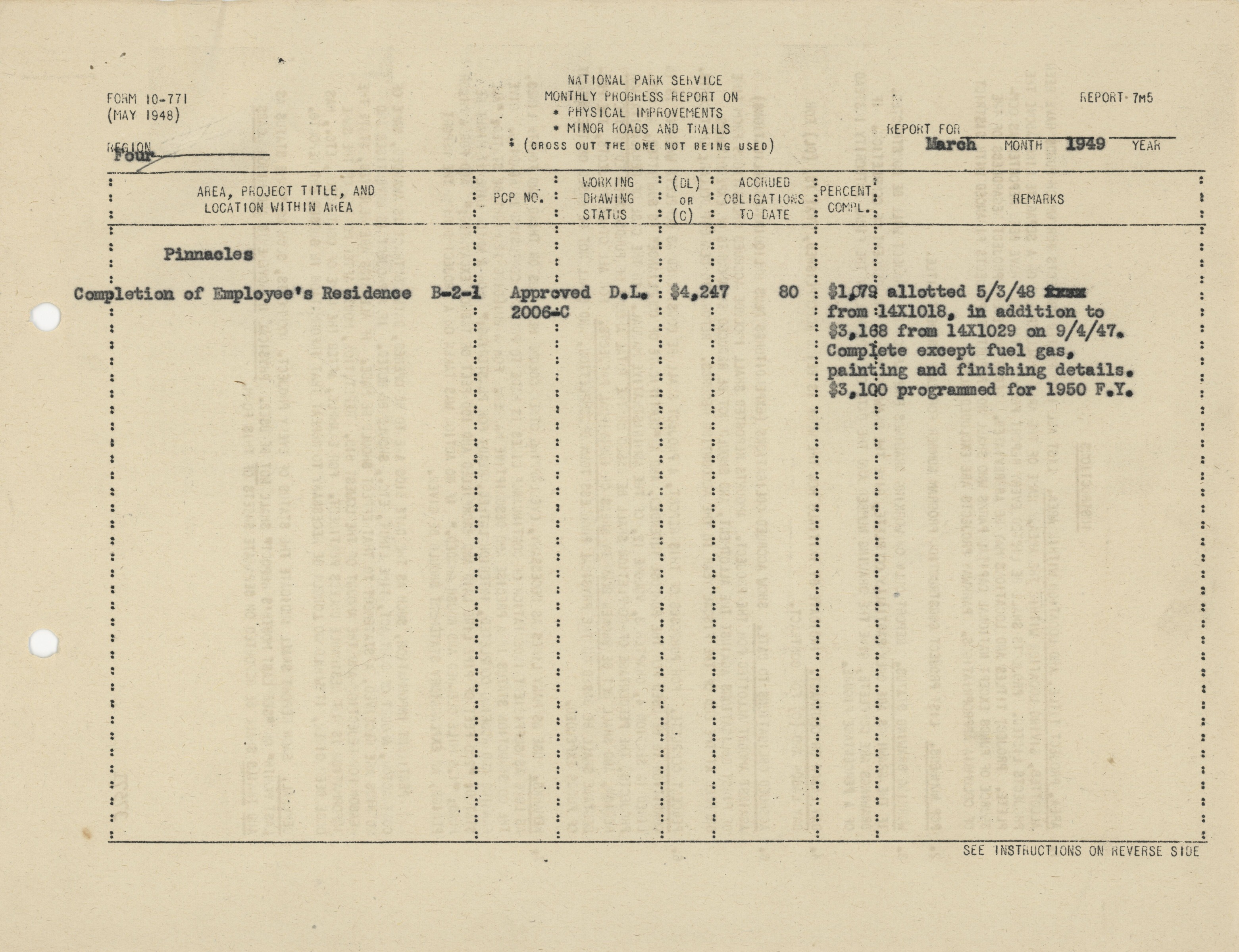 Original ID Reports: Monthly Progress Report on Physical Improvements or Minor Roads and Trails 1933-1952, 8.5 x 11 inches