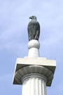 126' high overall, memorial consists of giant Doric column on temple-form pedestal on large balustraded platform reached by 4 flights of steps. Platform has bronzes of infantryman & cavalryman; 6' bronze of eagle mascot atop column.