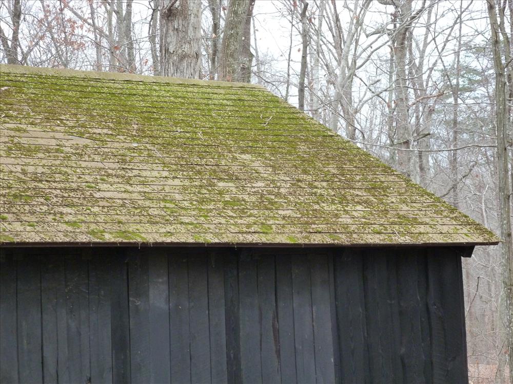 Pictures showing damage on roofs of thirteen structures in Cabin Camp 3 A-Unit at Prince William Forest on December 2011.