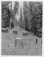 Administrative Collections: Album 2-Road clearing for construction of Lassen Park Road southwest approach showing timber and brush removal and burning.