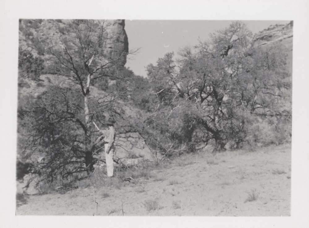 Pinon pine killed by porcupines. Locality: Upper Ute Canyon, Colorado National Monument. Negative #: 11214