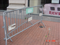 detail of "GSA" barrier with detail of brick "repair" with vegetation.