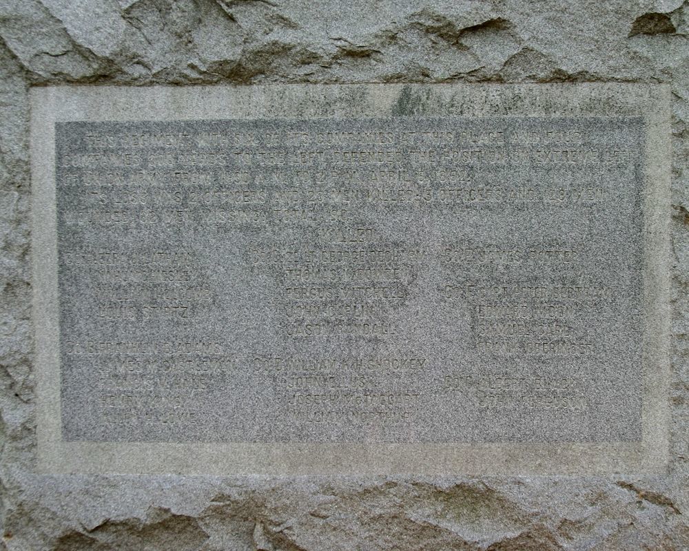 Constructed of Barre, VT, granite, the 9'6" high with a 2'8" base of rough-hewn block features a 5'5" statue of a Zouave soldier carved in relief. "OHIO" & the inscription are in raised lettering.