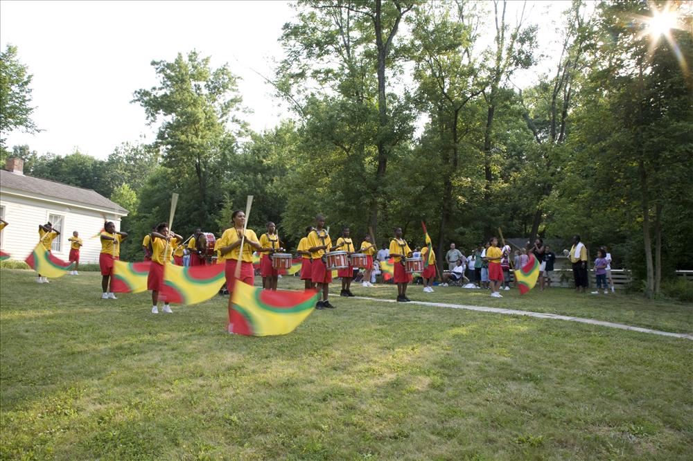 Cuyahoga Valley National Park (CVNP) and Cuyahoga Valley National Park Association present Get Up, Get Out & Go!, a campaign introducing recreational opportunities along the Ohio & Erie Canal Towpath Trail in Akron and the national park. The program targets residents in the urban neighborhoods surrounding the Towpath Trail in Akron which is a part of the larger Ohio & Erie Canalway, a national heritage area. Get Up, Get Out & Go! serves as an invitation for kids 11 to 14 years old and their families to give the Towpath Trail a try and to venture further along the trail into CVNP. || Visitors listen to an Akron youth marching band at the Get Up, Get Out, Go! kickoff event in June 2007.
