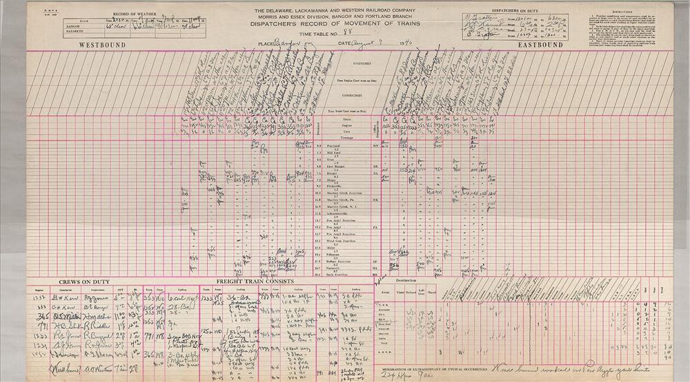 Dispatcher Sheets--Bangor & Portland Branch--Delaware, Lackawanna & Western Railroad [1946.08.01-1946.08.17]
