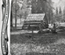 Copy Neg: Mike Floyd, 1992. Site of Lamon's cabin at the Y. P. & C. Co. stables. Two men in the middle are Chris Brown (Chief Lemee) and Ranger Bert Harwell.