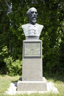 The gray & black, polished granite monument consists of a 44" square base supporting a rectangular pedestal for a total height of 72". A 36" x 24" x 52" bronze bust rests on top. A 26" x 22" bronze plaque is attached.