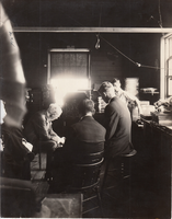 Thomas Edison and his associates listening to the Diamond Disc Phonograph.