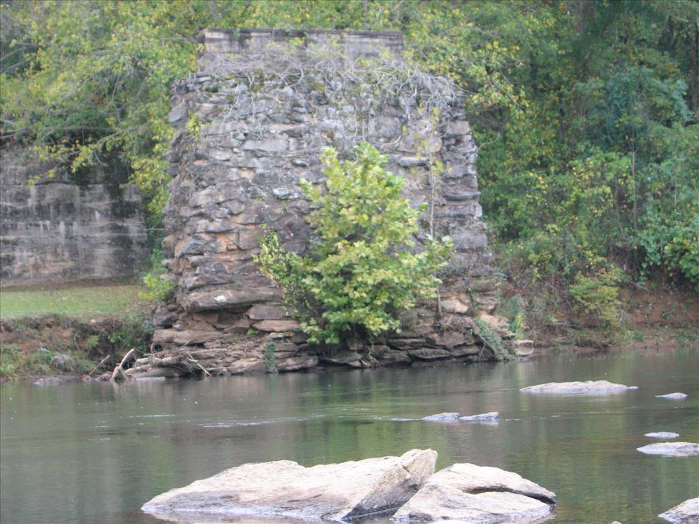 The first fifteen of twenty-one images photographed to document the condition of the remains of Miller Covered Bridge. Park Staff, in a canoe, rowed out in the Tallapoosa to take the pictures of the pillars.