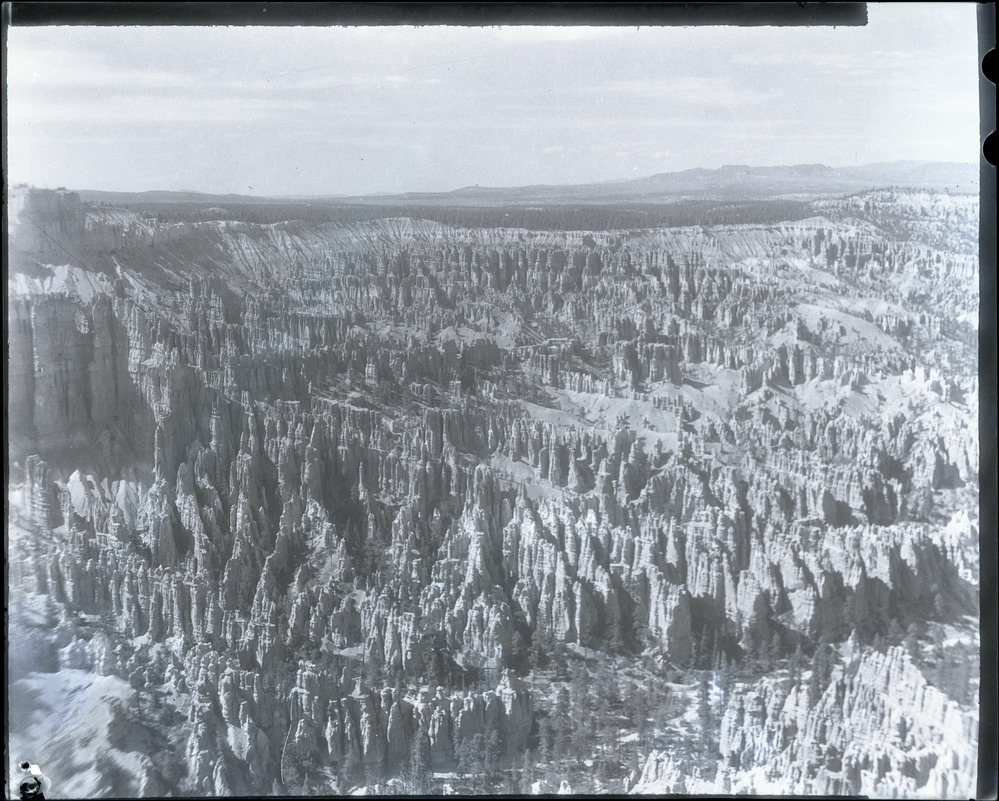 Nitrate negative of ampitheater and hoodoos from the rim in BRCA. ; BRCA Museum and Archives Image BRCA8875_001_535 ; BRCA 8875