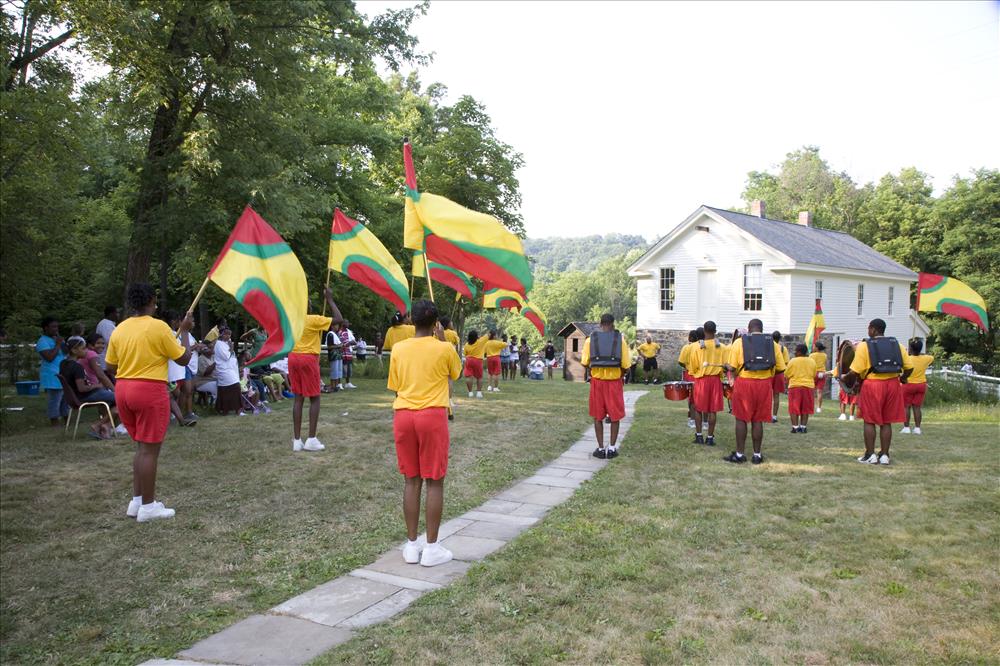 Cuyahoga Valley National Park (CVNP) and Cuyahoga Valley National Park Association present Get Up, Get Out & Go!, a campaign introducing recreational opportunities along the Ohio & Erie Canal Towpath Trail in Akron and the national park. The program targets residents in the urban neighborhoods surrounding the Towpath Trail in Akron which is a part of the larger Ohio & Erie Canalway, a national heritage area. Get Up, Get Out & Go! serves as an invitation for kids 11 to 14 years old and their families to give the Towpath Trail a try and to venture further along the trail into CVNP. || Visitors listen to an Akron youth marching band at the Get Up, Get Out, Go! kickoff event in June 2007.