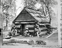 Copy Neg: Michael Dixon, July 24, 1985. Detail of L. Smaus stereo (RL-16,433). Caption: "1626. Lamon's Log Cabin, the first built in the Valley."