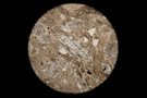 Circular microscopic image of rock structure.