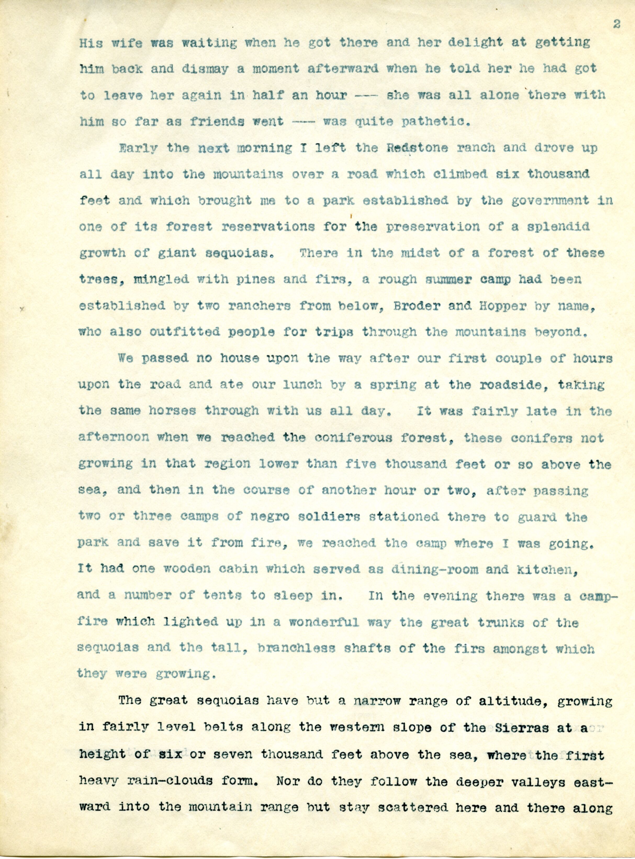 Journal entry from Dorr's collection of papers titled, "A Trip Through the California Sierras In September 1904".
