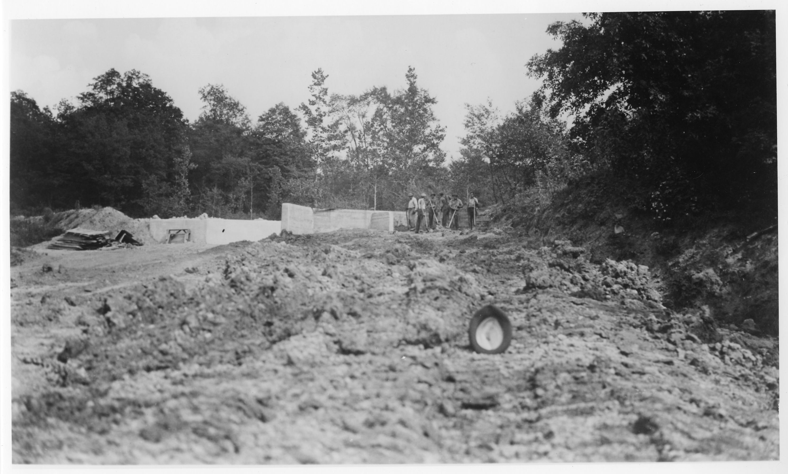 Construction of Kendall Lake & Dam, Civilian Conservation Corps ca. 1933. See scan of writing on the back of each image for additional details. || Many of the historic structures in the Virginia Kendall unit of Cuyahoga Valley National Park were built by Civilian Conservation Corps workers during the 1930s.