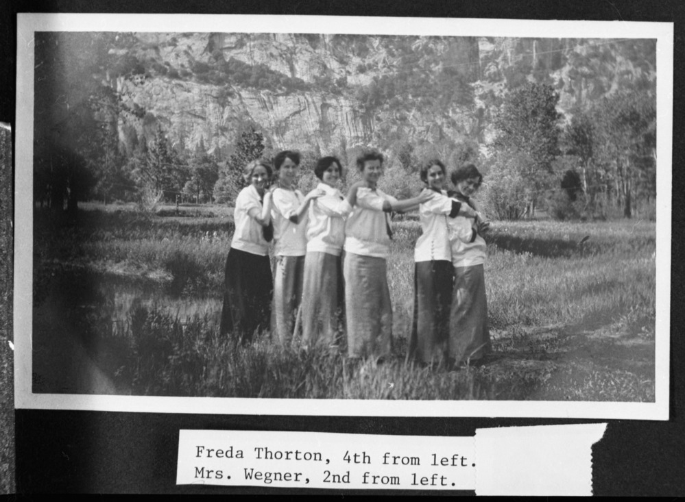 Freda Thornton, far right and Mrs. Wegner, far left. Copied from the Wegner photo album