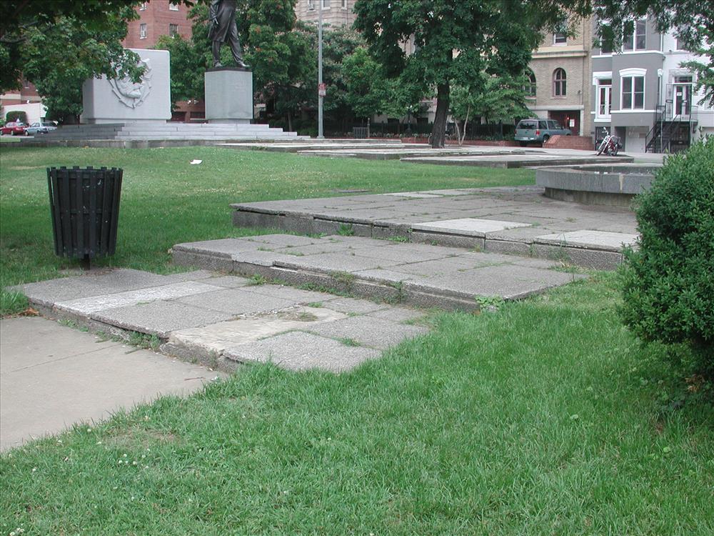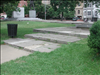 Shevchenko Plaza is deteriorating to weathering. Work needed includes replacement of stones, base material, and mortar.
