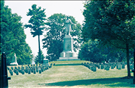 001B || Constructed of white granite from Westerly, RI. 22' square at base and 44'7" h from fndtn to top of statue.Statue itself is 21'6" h figure of soldier w/rifle.Base reads "NOT FOR THEMSELVES/BUT/FOR THEIR COUNTRY". Replace mortar. || Built between 1871 and 1873; sculpted by James W. Pollette. Shown at Philadelphia Centennial Expo in 1876; base created by Cemetery Association in 1879; monument installed and dedicated in 1880