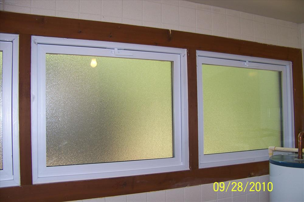 looking interior at new vinyl windows installed in bathroom of Dorm B14