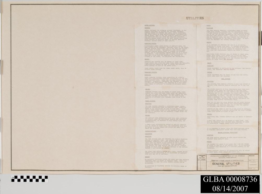 Master Plan for Preservation and Use of Glacier Bay National Monument. 18 pages including maps and text with blue and red ink corrections.