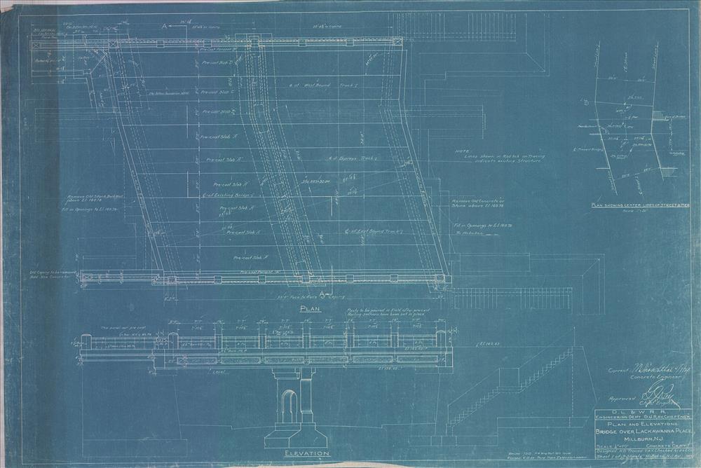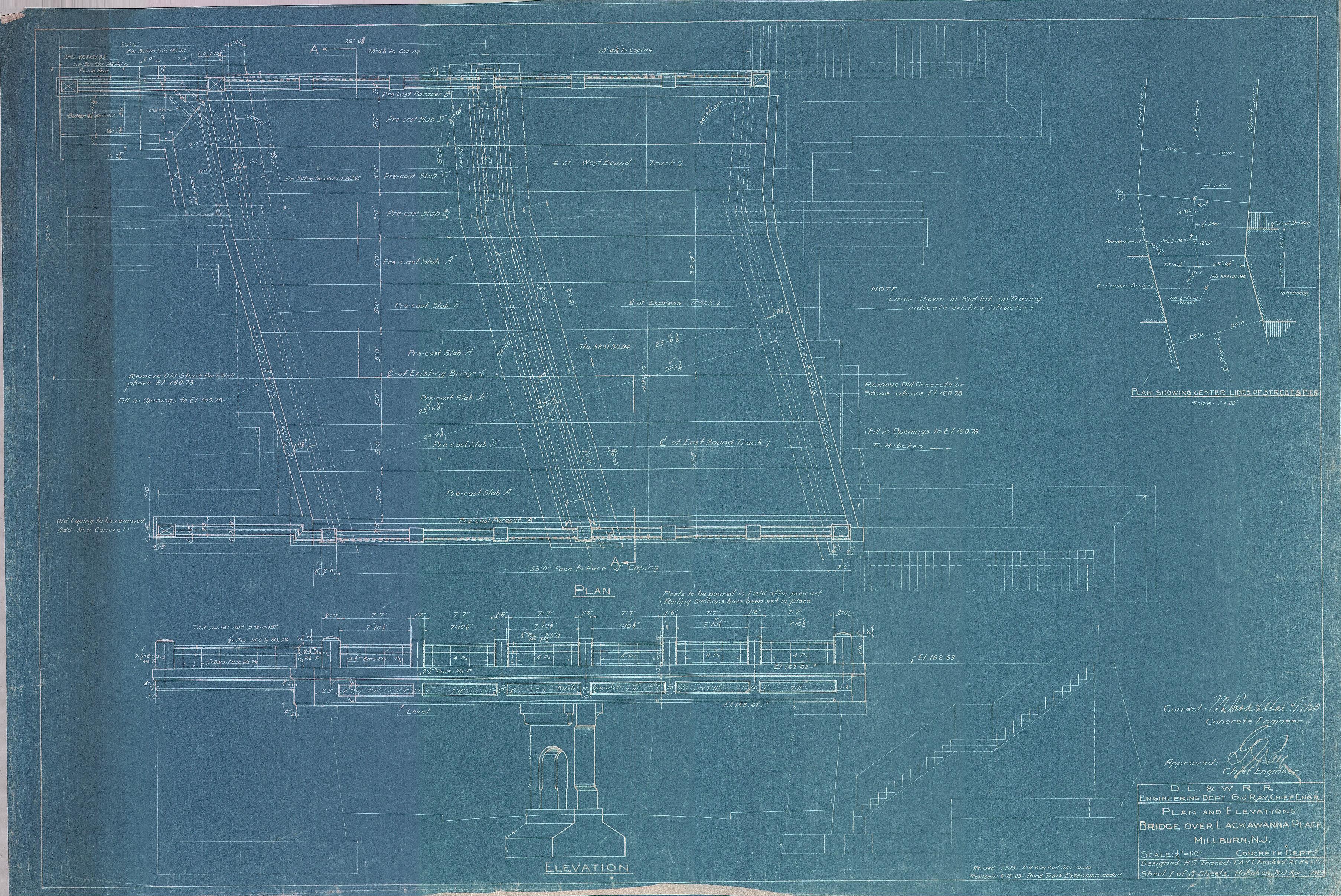 Bridge over Lackawanna Place--Plan and elevations--Millburn, NJ [1923.04] Sheet no. 1 of 5