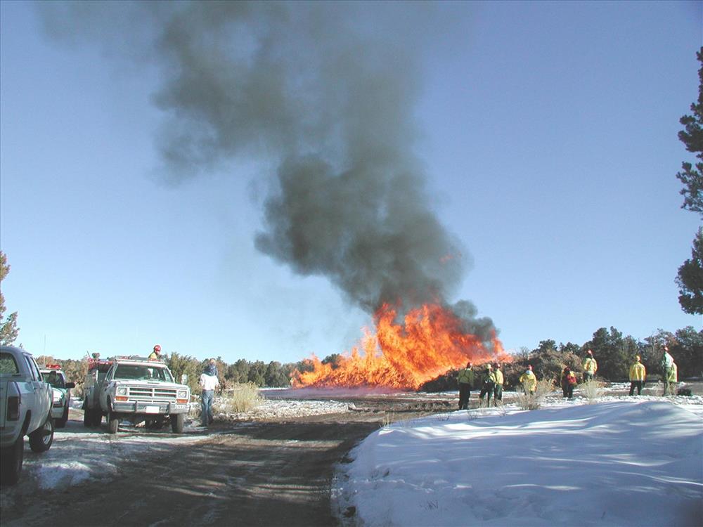 Brush pile burn as part of fuel reduction, Mesa Verde National Park, Jan. 2002