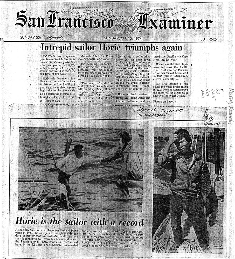 Intrepid sailor Horie triumphs again, from: San Francisco examiner (Sunday, May 5, 1974), pages [?], 23