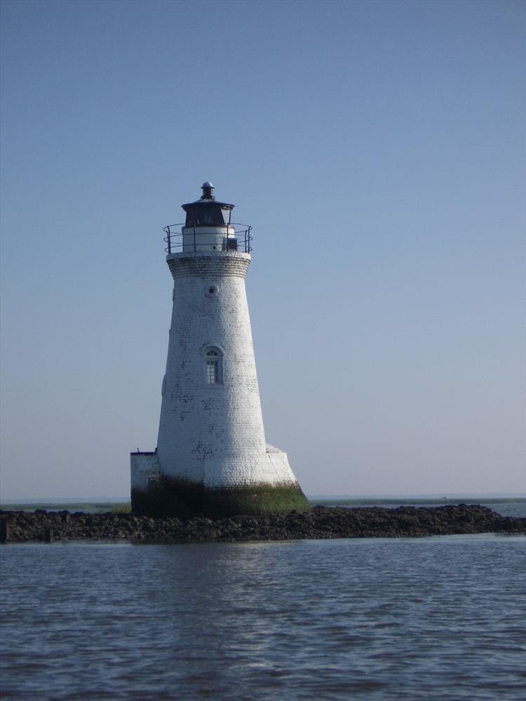 The lighthouse is open to the public, but only accessible by boat at low-tide. The islet is covered by oyster shells and marsh grass, but is usually submerged during high-tide. These pictures were taken between 8:00 a.m. and 9:00 a.m. EDT on 2007 June 22 (first full day of summer). According to NOAA (http://tidesandcurrents.noaa.gov/) low-tide was predicted to occur at 8:30 a.m. EDT with a height of 0.8 feet above Mean Lower Low Water.