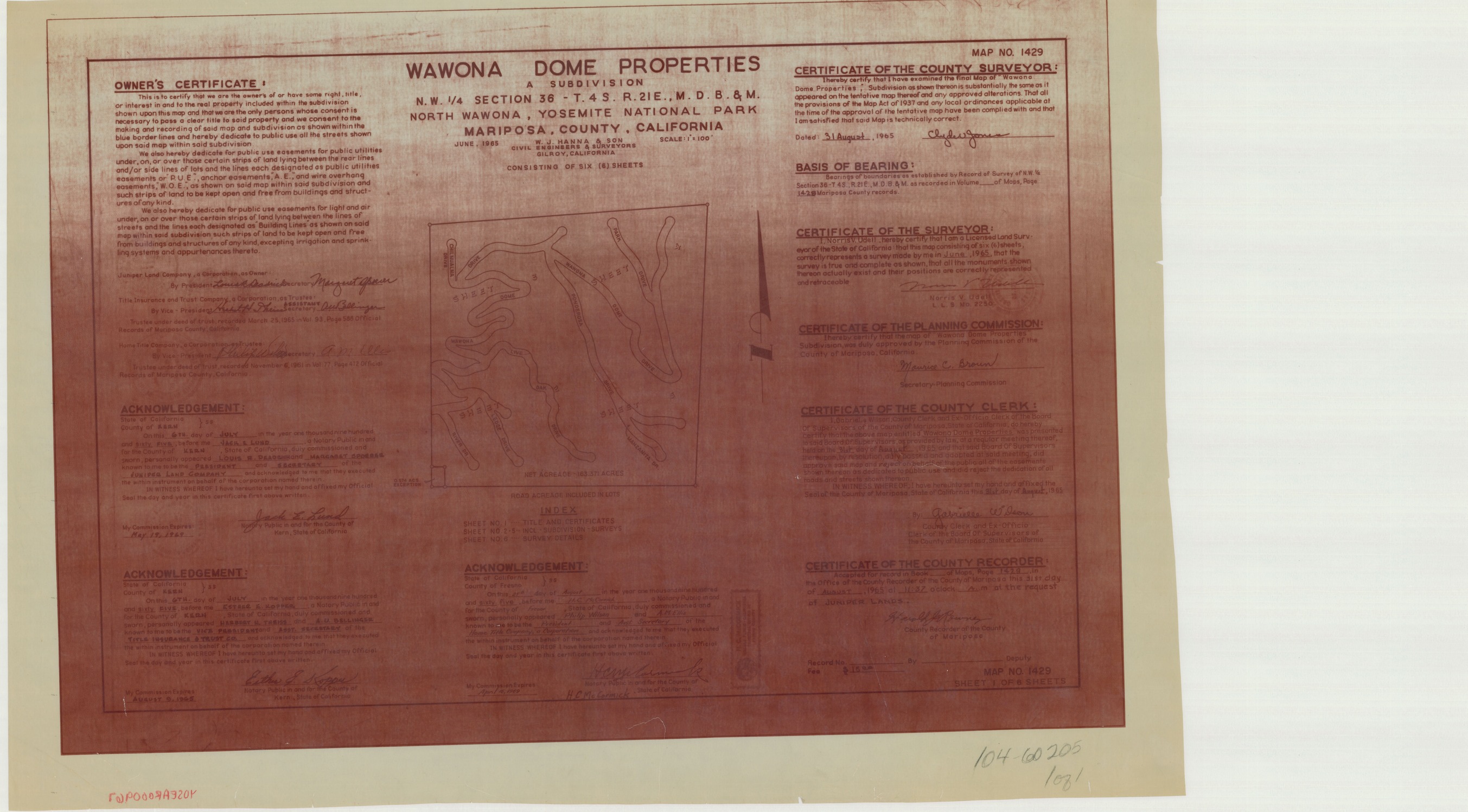 Item Number: YOSEAR000967; TIC No: 104-60205; Alternate Id: 1 of 1, Map No.1429 Sheet 1 of 6