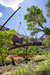 a large crane hoisting a steel bridge in the air with trees and red sandstone cliffs in the background