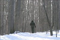 Ranger Rebecca Jones hikes on Stanford Trail.