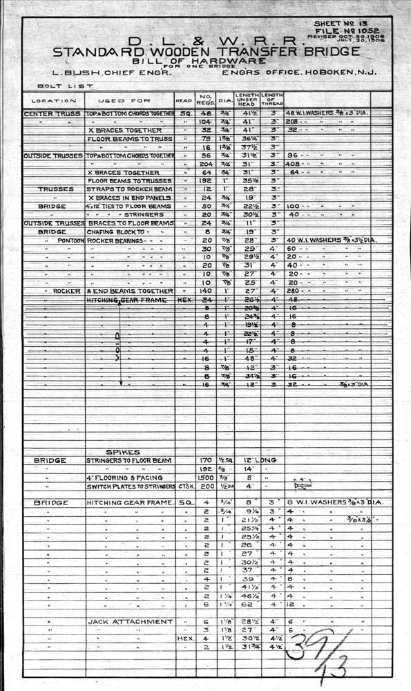 Hoboken Freight Terminal--Railroad bill of hardware for standard transfer bridge pontoon--Hoboken, NJ