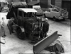 Painting FWD snow plow in maintenance area.