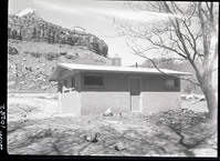B&W negative showing comfort station construction, South Entrance campground. This item has a positive. This item has a duplicate photo. ; ZION Museum and Archives Image 003_01066 ; ZION 7280