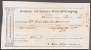 Rochester and Syracuse Railroad Company shipping receipt to Richard Pell Hunt