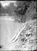 B&W negative of Blue Springs area with person on top of log dam. ; ZION Museum and Archives Image ZION 7144 ; ZION 10061