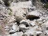 A rock fall occurred from the cliff headwall above the Four Mile Trail, above and east of the long traverse beneath Sentinel Rock. The fall initiated near the top of the headwall and fell approximately 100 m onto the Four Mile Trail, covering the trail with rocks and broken vegetation (oaks). Numerous roots were exposed on the detachment surface from a fir tree adjacent to the source area.