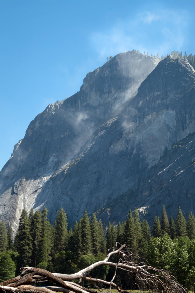 A rock fall from Glacier Point, directly behind (south of) Curry Village produced sharp cracking sounds. The source area was on the upper headwall of Glacier Point, from the east facing cliff below and west of the uppermost headwall.