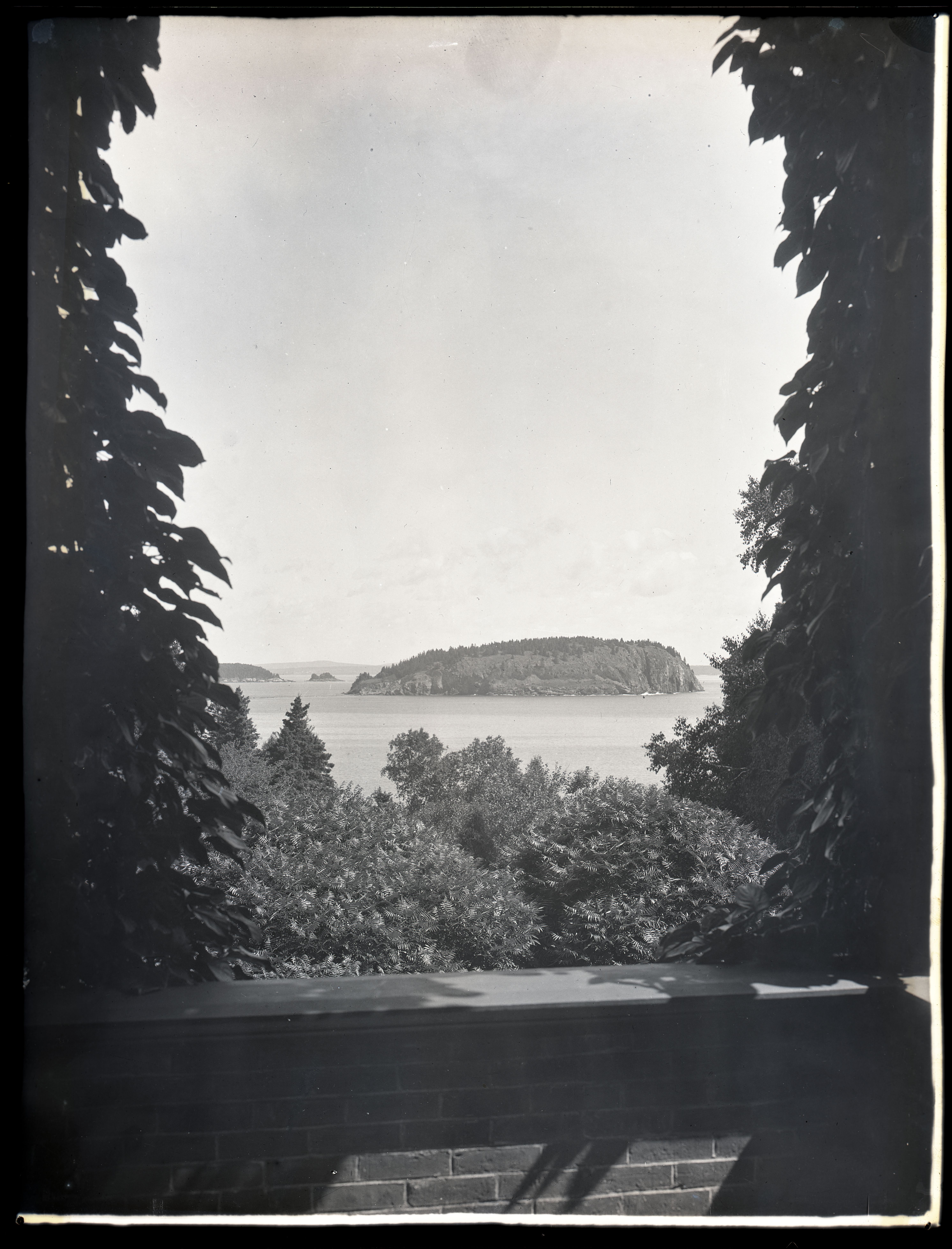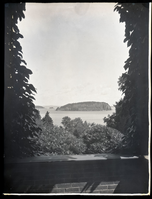 Vista of Bald Porcupine from Old Farm porch looking through vines