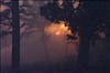 Night photos of a house burning during the Long Mesa fire in Mesa Verde National Park, July-August 2002