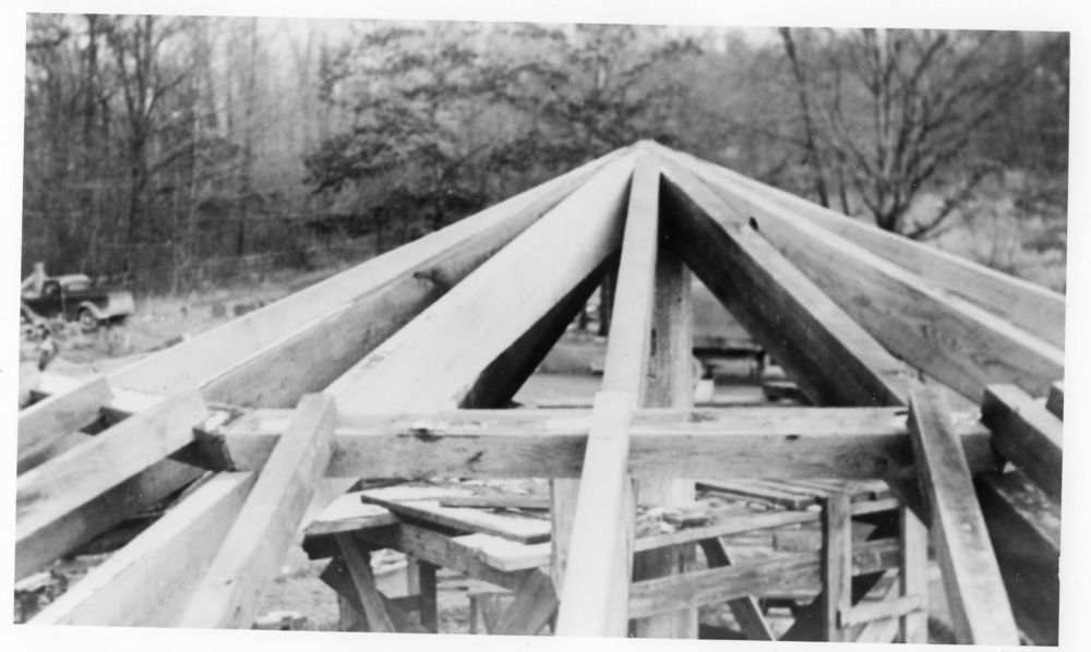 Construction of Octagon Shelter by Civilian Conservation Corps ca. 1937. See scan of writing on the back of each image for additional details. || Many of the historic structures in the Virginia Kendall unit of Cuyahoga Valley National Park were built by Civilian Conservation Corps workers during the 1930s.