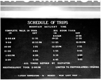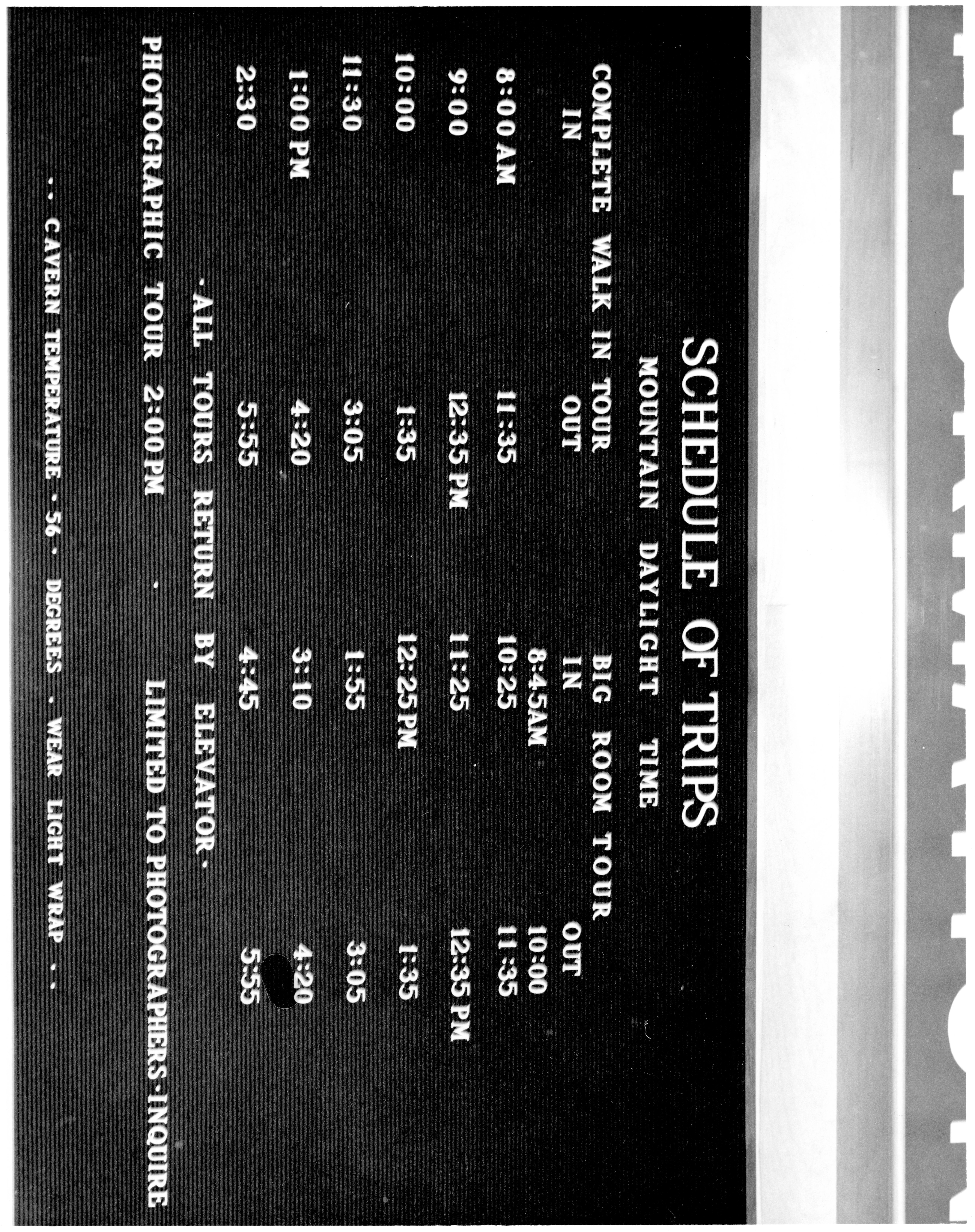 A black and white photograph of a board informing visitors of the schedule of trips.
