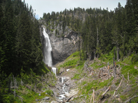 Comet Falls with avalanche debris in foreground.