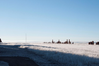 View of Officers Row from Depot Warehouses. Hoar frost covering the ground.