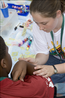 Youth have their faces painted at the Get Up, Get Out & Go! finale in August 2007. || Cuyahoga Valley National Park (CVNP) and Cuyahoga Valley National Park Association present Get Up, Get Out & Go!, an urban outreach program introducing kids ages 11 to 14 and their families to recreational opportunities along the Ohio & Erie Canal Towpath Trail in the greater Akron (Ohio) area. This free summer series targets residents in the urban neighborhoods surrounding the Towpath Trail in Akron but is open to all participants.