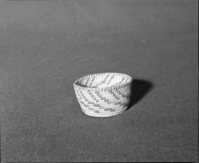 Private Collection. Object: Miwok basket. Dimensions: 5 1/2 x 3 1/4". Materials: Redbud, split shoot that could be bull pine. Technology: Pedestal base was made and attached by two or three stitches. Collection History: Made for the owner when she was a ch