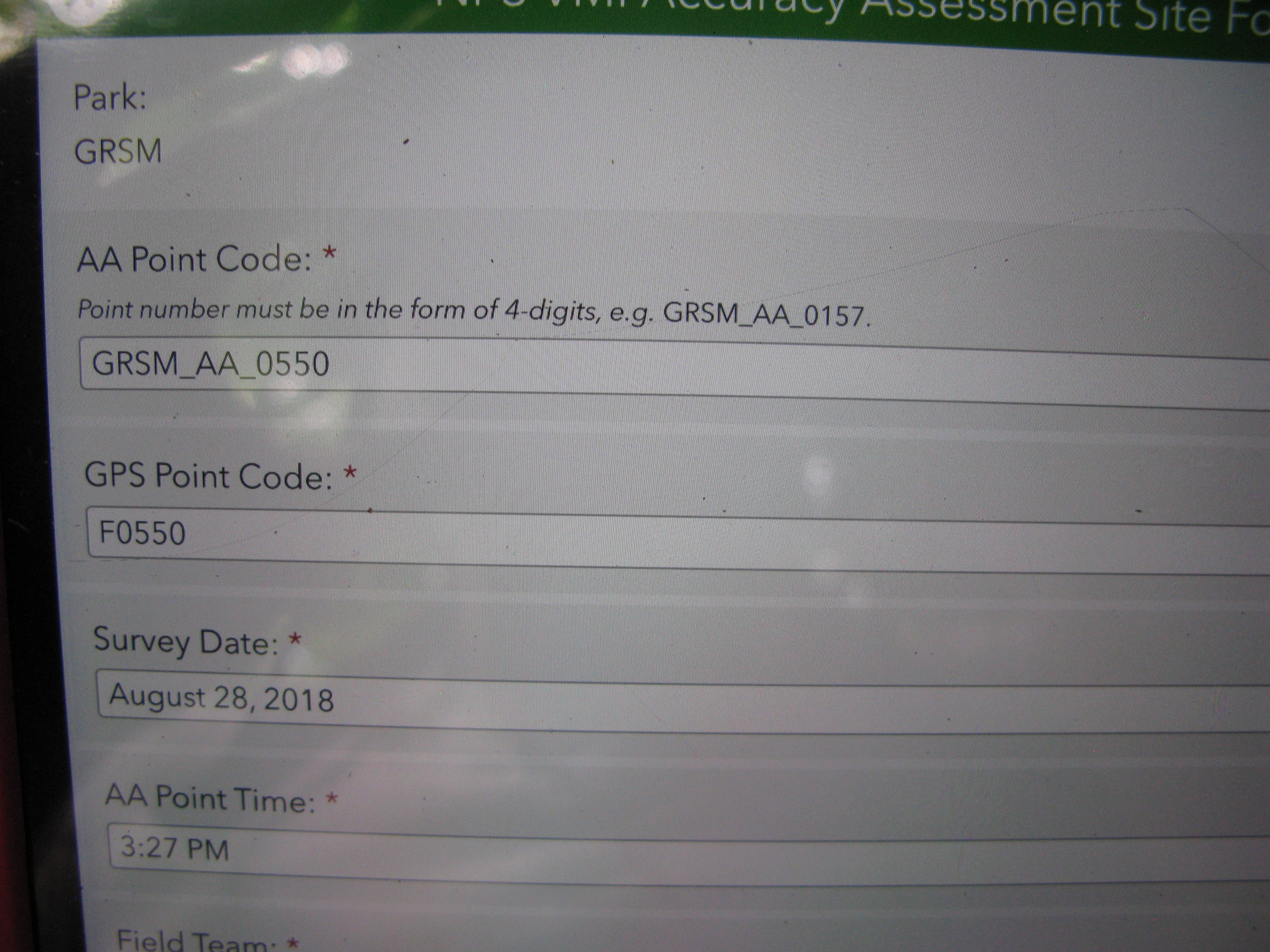GRSM Accuracy Assessment. Plot Code: GRSM_AA_0550_1