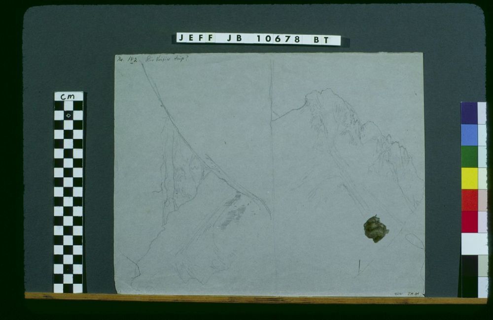 Rio Virgen trip(?), reverse of Mt. Nebo (pencil sketch by Moran).