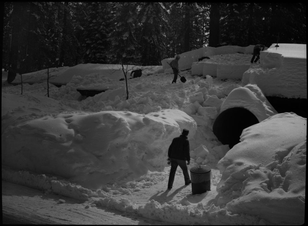 Robert Zink, Grant Grove, KCNP, Record Heavy Snows, Snow removal from Visitor Center after critical weight was reached February 6. 690212.